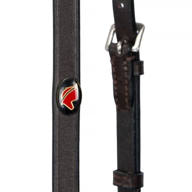 Nachrapnik posiada regulację w trzech punktach, co umożliwia dokładne dopasowanie do głowy konia i stabilne ułożenie podczas jazdy.