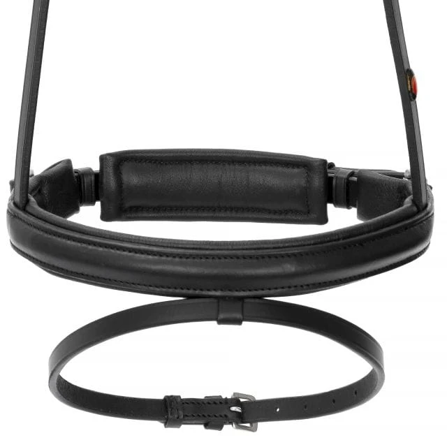 Model wyposażony jest w miękkie podszycia, które zwiększają komfort konia i pomagają zapobiegać otarciom w wrażliwych miejscach. Regulacja pozwala łatwo dopasować nachrapnik do głowy konia, zapewniając stabilne ułożenie podczas jazdy.