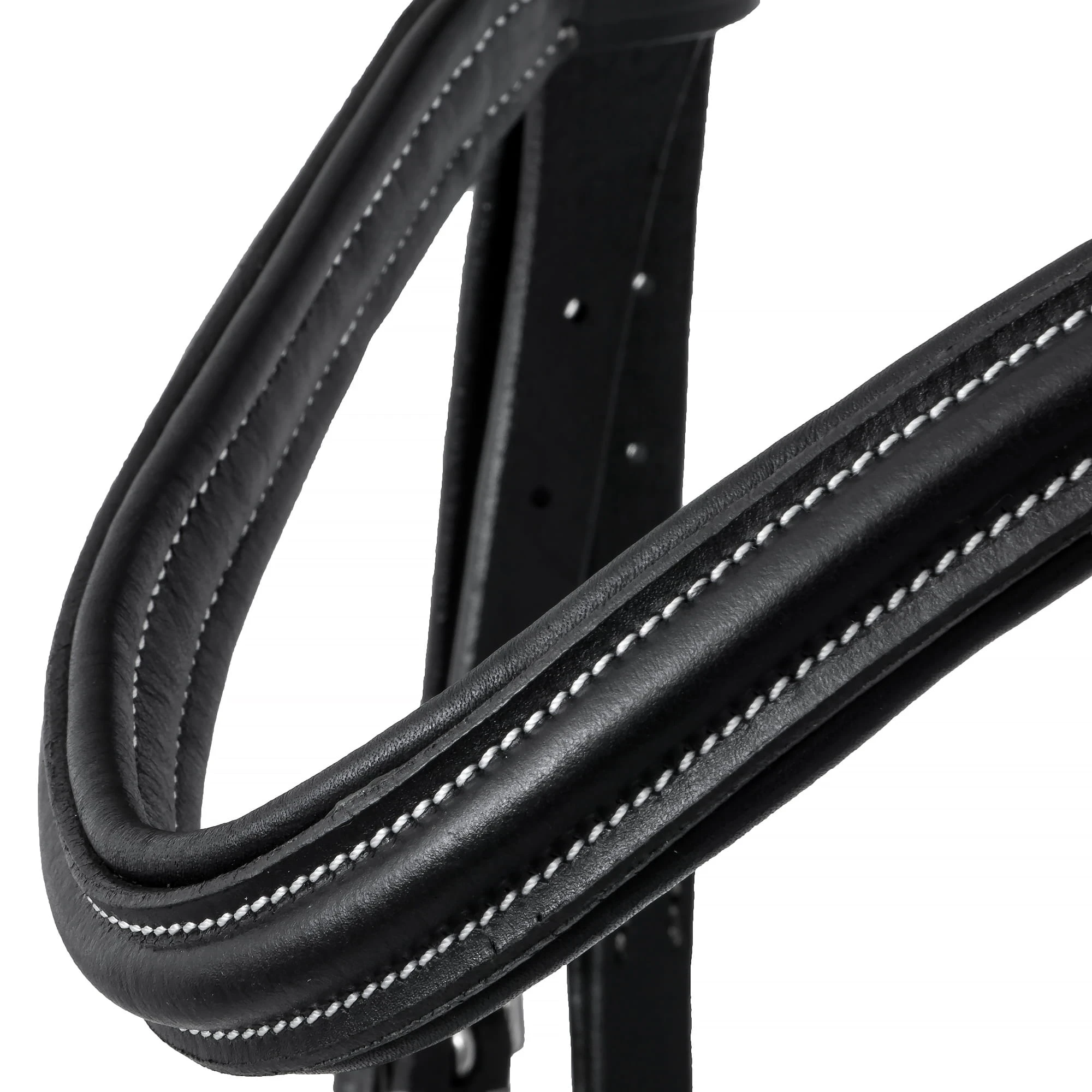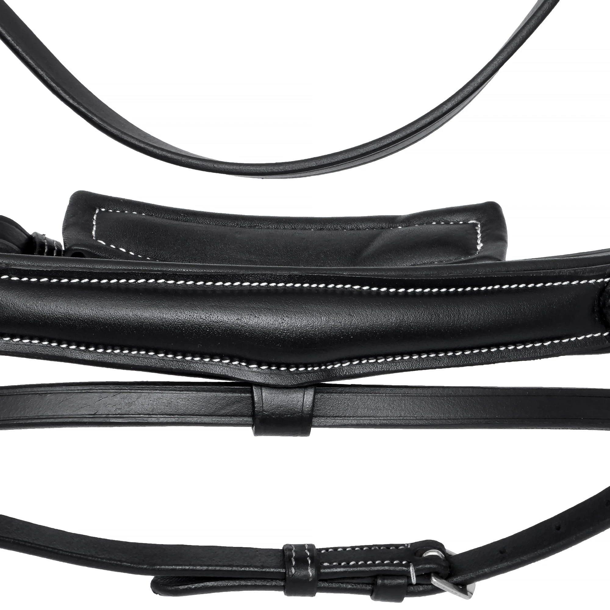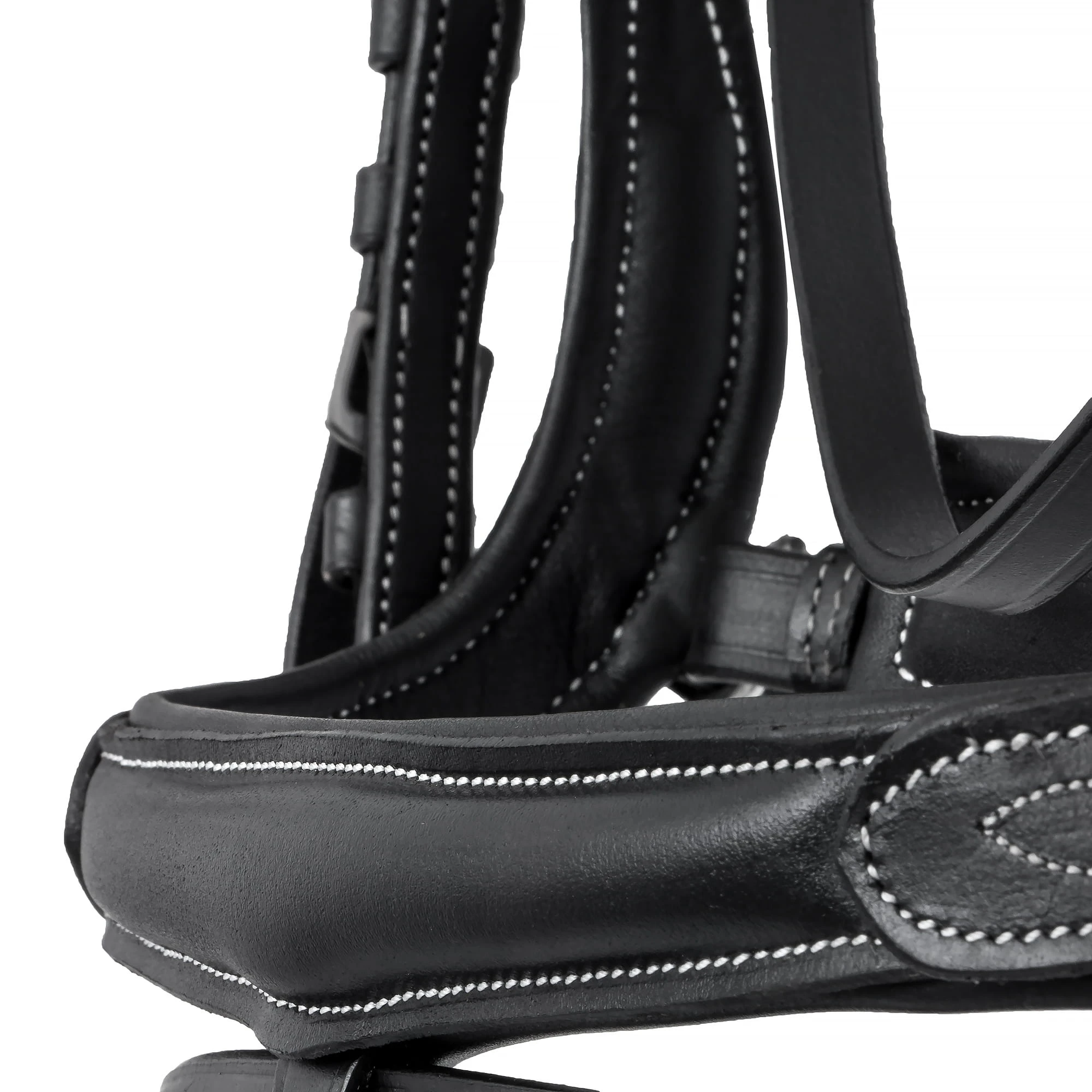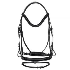 Stylowe kontrastowe przeszycia oraz subtelny połysk skóry nadają ogłowiu elegancki charakter, dzięki czemu doskonale sprawdzi się zarówno podczas codziennych treningów, jak i w czasie zawodów.