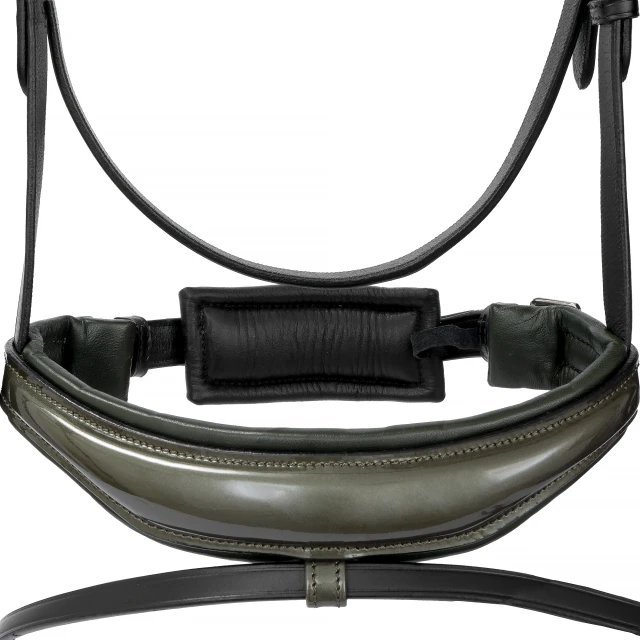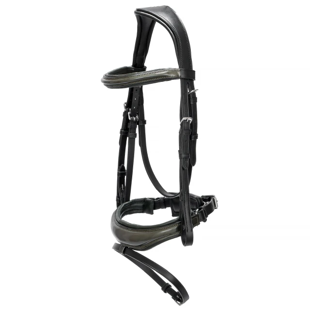 Model wyposażony jest w szeroki nagłówek oraz nachrapnik w typie kombinowanym, które zostały podszyte miękkim materiałem. Takie rozwiązanie zwiększa komfort konia i pomaga zapobiegać otarciom podczas jazdy.