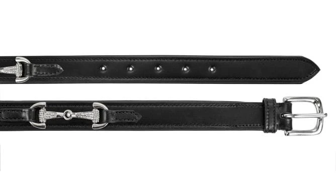 Charakterystycznym elementem paska jest ozdoba w kształcie wędzidła wysadzanego drobnymi kryształkami, która nadaje mu wyjątkowego, jeździeckiego charakteru i subtelnej elegancji.