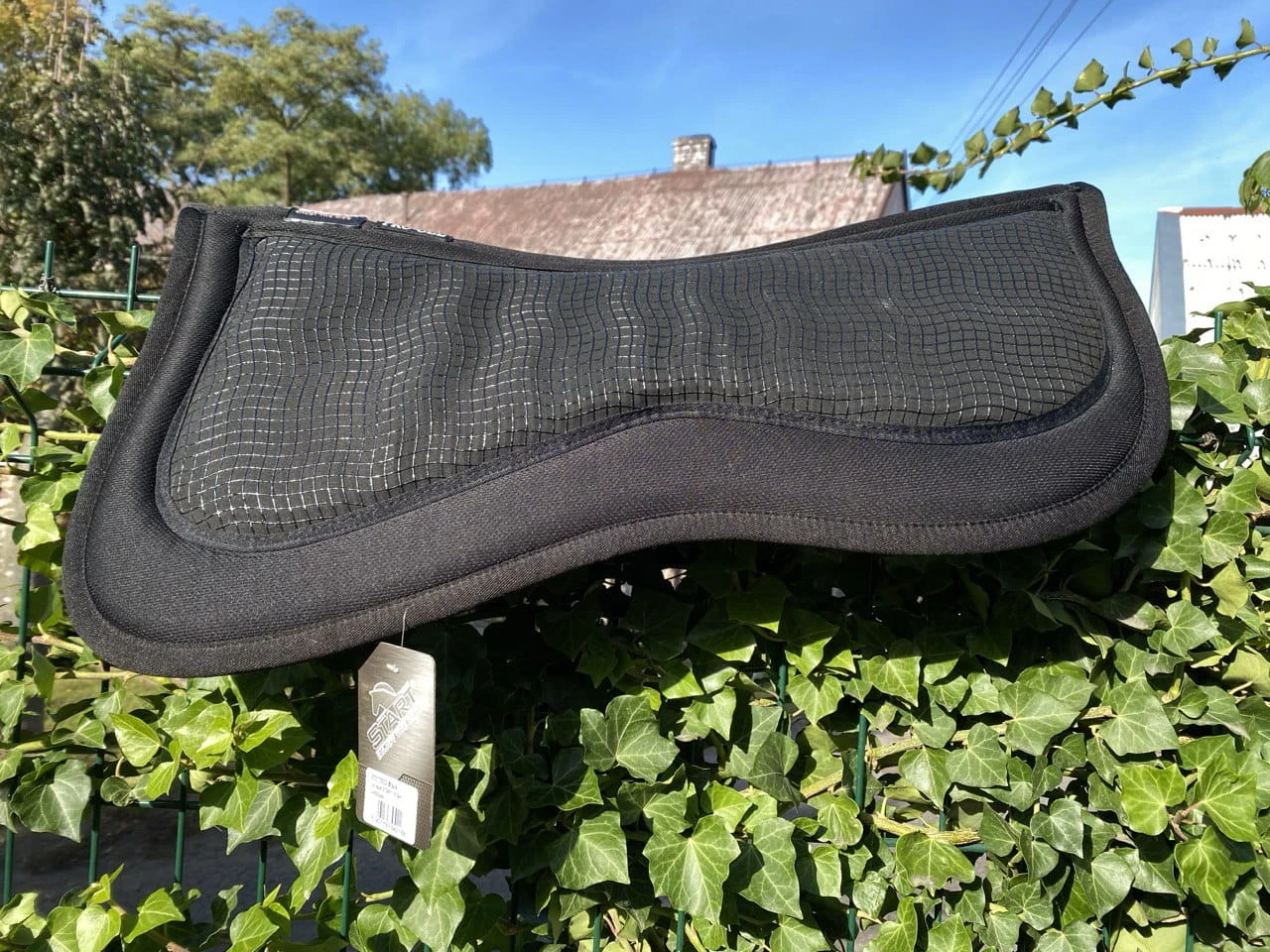 Wykonana z materiału żelowego, doskonale amortyzuje wstrząsy, chroniąc grzbiet konia przed nadmiernym naciskiem. Dodatkowa warstwa silikonowa o strukturze antypoślizgowej sprawia, że podkładka stabilizuje siodło i zapobiega jego przesuwaniu się podczas jazdy.