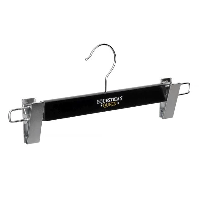 Wieszak na bryczesy EQ.QUEEN drewniany z logo to praktyczne i eleganckie rozwiązanie do przechowywania odzieży jeździeckiej. Dzięki mocnym klipsom bryczesy pozostają na miejscu, bez ryzyka zsuwania czy zagnieceń.