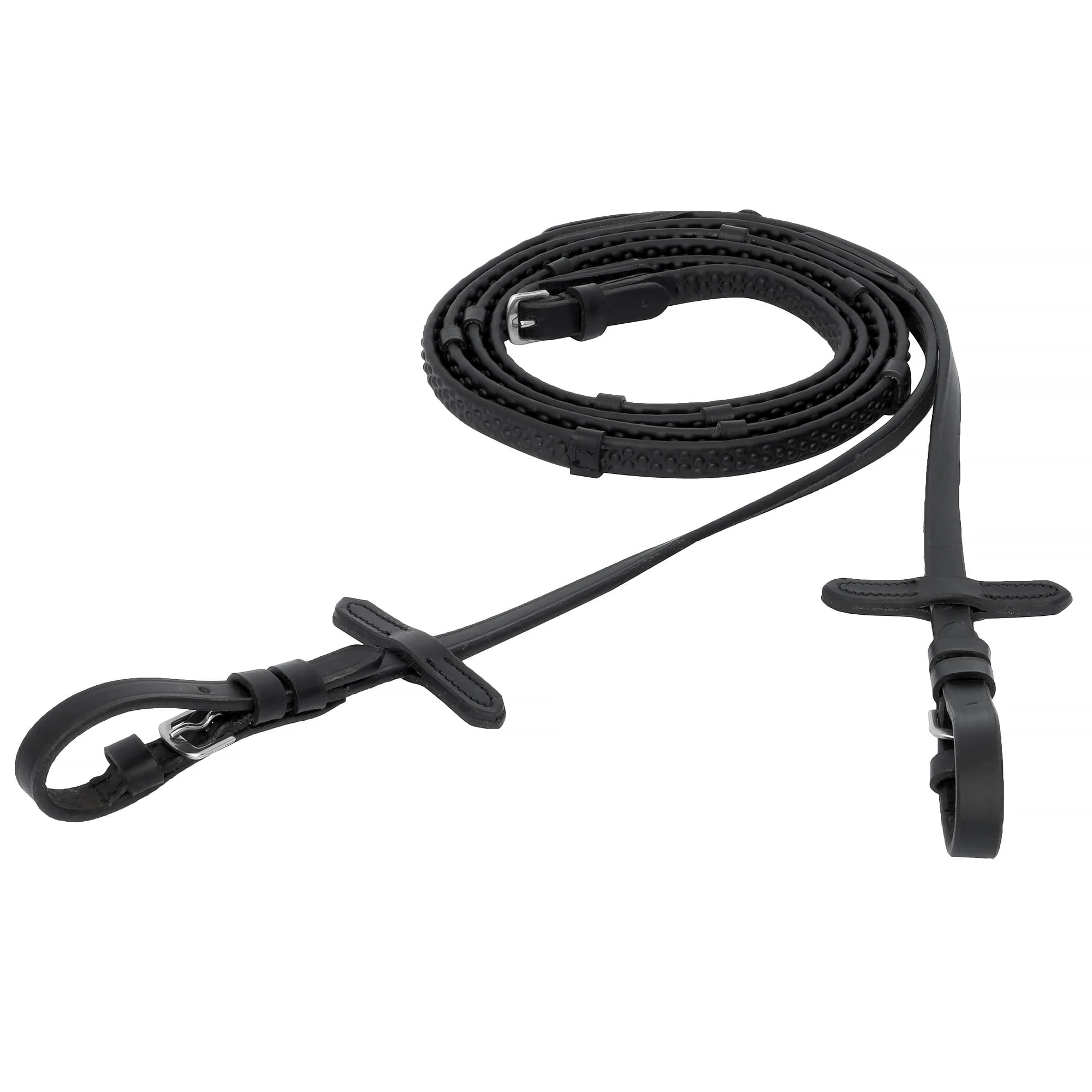 Wodze gumowe START Pimple to funkcjonalne i wygodne wodze jeździeckie, które zapewniają pewny chwyt oraz stabilną pracę ręki. Wykonane z wysokiej jakości gumy o charakterystycznej wypustkowej strukturze typu pimple, skutecznie zapobiegają ślizganiu się dłoni – nawet podczas jazdy w deszczu czy intensywnego treningu.