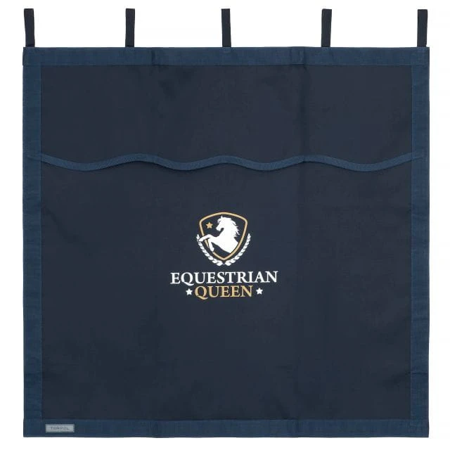 Elegancki, granatowy kolor oraz charakterystyczne logo Equestrian Queen nadają zasłonie wyjątkowy, profesjonalny wygląd.